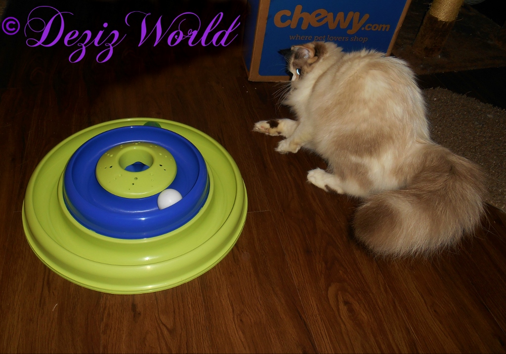 Dezi whacks the Cat Dancer from the liberty Cat tree